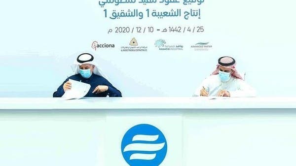 الجمل الجملية ، عقداً مع تضامن شركة تقنية المياه عند بدء التشغيل روافد للصناعة ، لتنفيذ مشروع إنتاج “الشعيبة 1” بسعة تصميمية تبلغ 600 ألف متر مكعب يوميا من المياه المحلاة ، وتحقيق هدف زيادة المحتوى وتوو صناعة التحلية ، وعقدا وتضامن شركة الراشد المحلي للتجارة والمقاولات وفرع شركة أكسيونا أجوا إس ، لتنفيذ مشروع إنتاج “الشقيق 1” بسعة تصميمية تبلغ 400 ألف متر مكعب يوميا من المياه المحلاة.