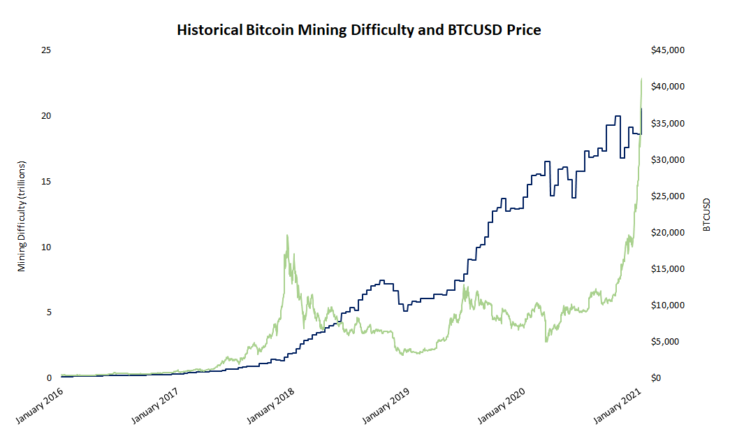 مع استمرار سعر البيتكوين في الارتفاع – لفترة وجيزة تقريبًا لمس 42000 دولار يوم الجمعة – تواكب عائدات عمال المناجم ، مما يحفز المزيد من المشاركين على التعدين. قبل اثني عشر شهرًا ، كانت صعوبة عملات البيتكوين أقل من 15 تريليون.