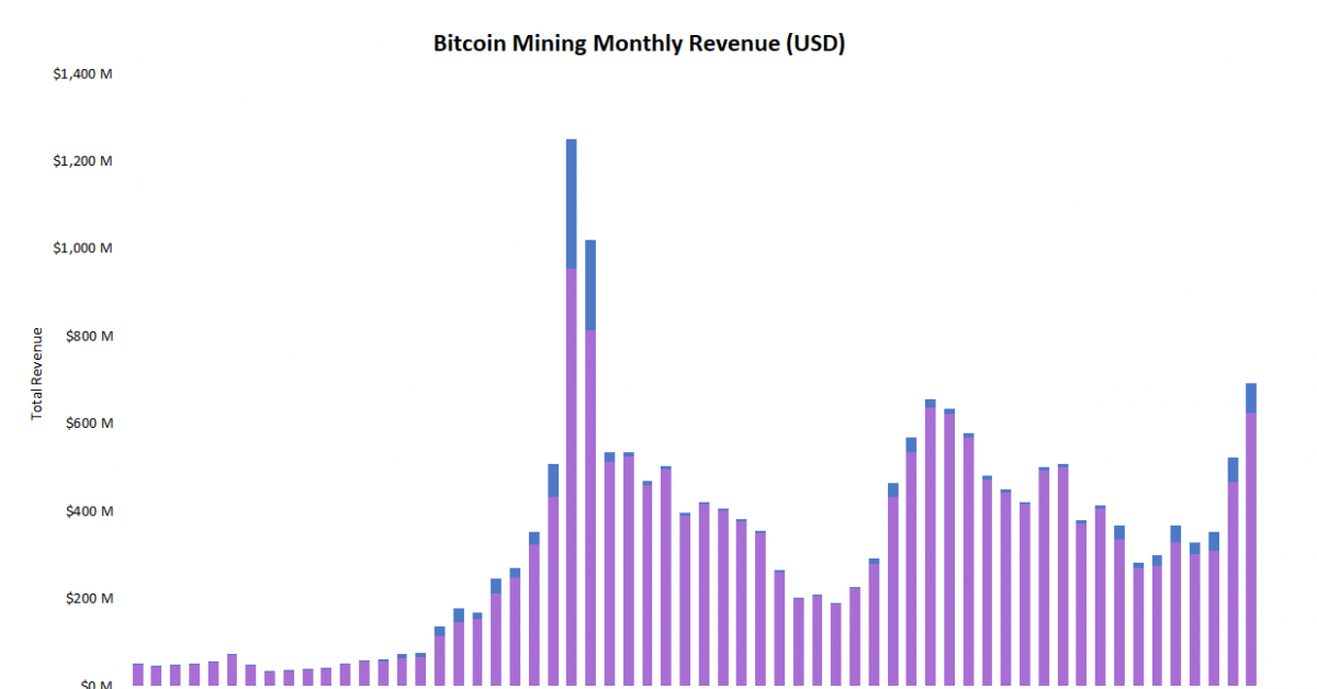 وبتوسيع زيادة شهر نوفمبر بنسبة 48٪ ، استمرت عائدات عمال المناجم في الارتفاع حيث ارتفعت عملة البيتكوين أكثر من 300٪ العام الماضي ، حيث تم تداولها لفترة وجيزة فوق 29000 دولار لأول مرة على الإطلاق في ليلة رأس السنة.
